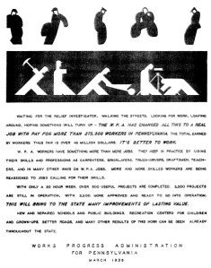 For those of you curious about the banner graphic, this was derived from part of a flyer extolling the benefits of the WPA for Pennsylvania. Note that the unemployed are curvilinear–a sure sign of shiftless behavior, I suppose. The workers on relief are properly rectilinear, as befits their hard work creating an infrastructure for America that we still enjoy. I did replace a pickaxe with a shovel, although I’ve certainly employed the former in my own archaeological investigations. I do agree with the flyer’s anonymous author that the WPA created projects of lasting value–certainly this is true of the archaeology carried out across the Commonwealth of Pennsylvania and the rest of the U.S.