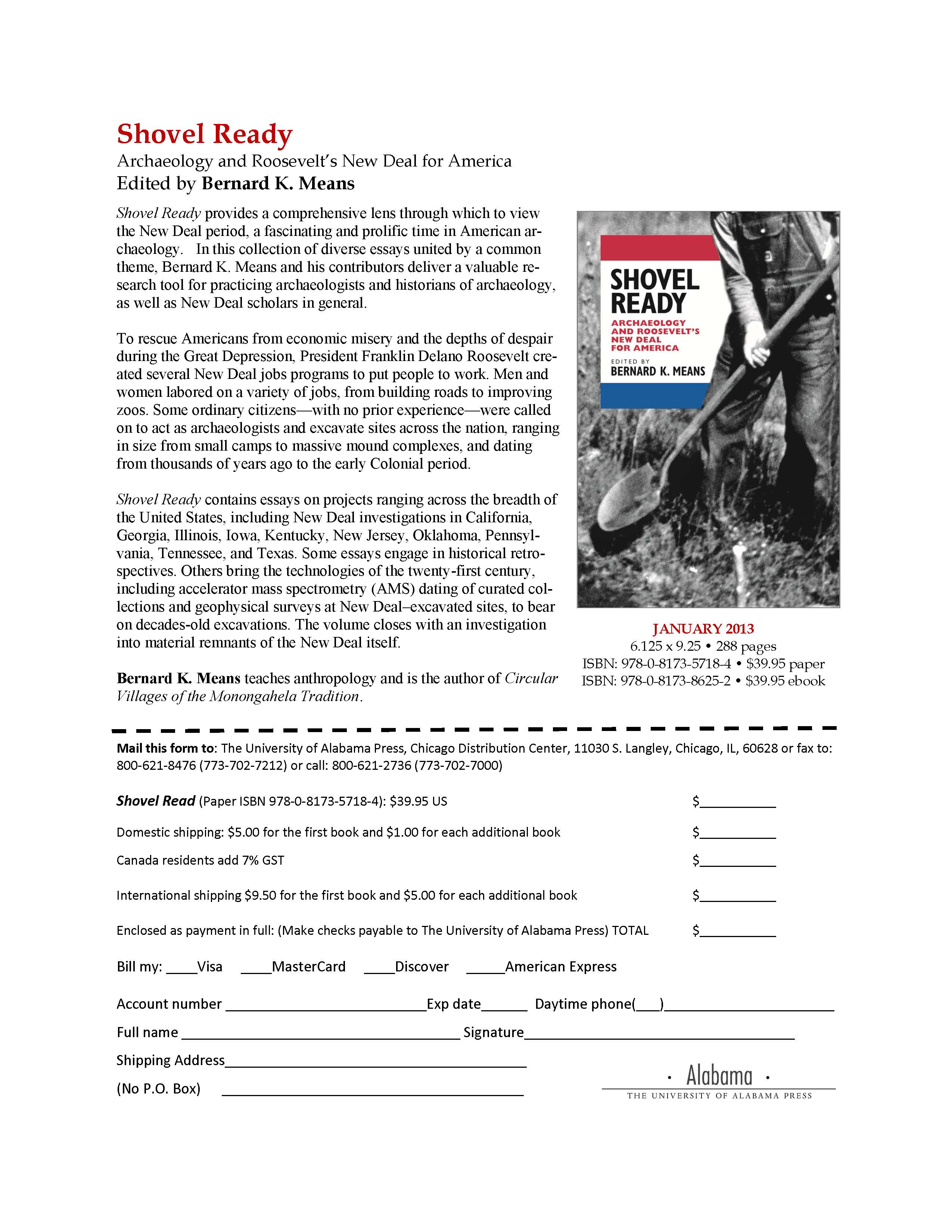 Still trapped in the world of indexing Shovel Ready so this post is limited to the flyer I received fro The University of Alabama Press. I have been corresponding with Brent McKee of the great WPA Today web site (http://www.wpatoday.org/Home_Page.html), which focuses on the legacy of the WPA across the U.S., but with a special focus on Maryland. My next post will therefore focus on New Deal archaeology in Maryland, drawing on research done by VCU alumnus Brenna McHenry.